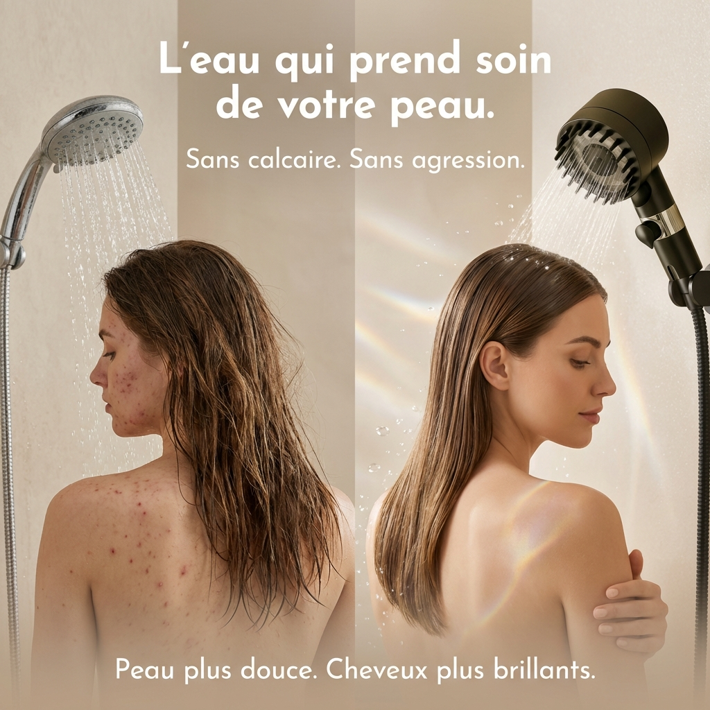 « Eau nettement plus douce dès les premières utilisations. Le calcaire a clairement diminué et ma peau ne tiraille plus après la douche. »